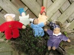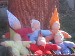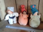 Some larger dolls, all with a different body and a different filling: f.l.t.r., wool, spelt and a flexible body made with wire or pipe cleaner.