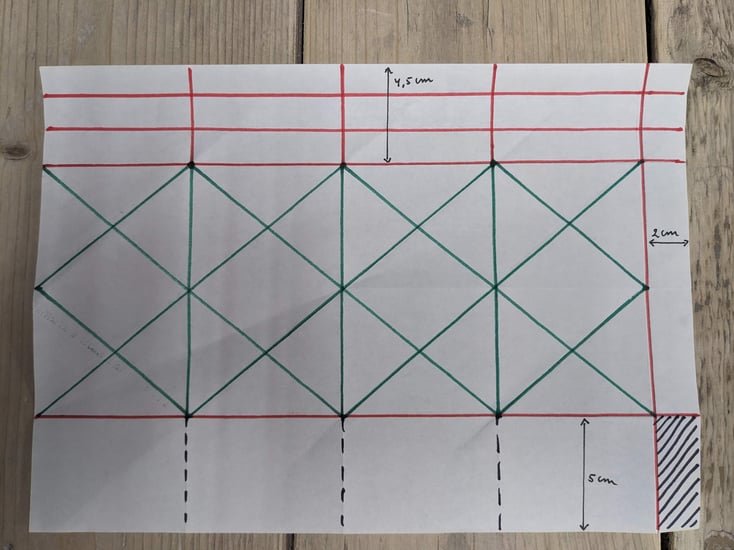 Vouw de bovenrand (4,5 cm) in drie gelijke delen.